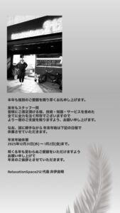 なお、誠に勝手ながら年末年始は下記の日程で休業させていただきます。
